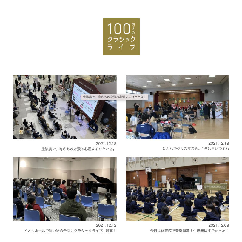 令和4年1月23日(日) 「100万人のクラシックライブ」を開催いたします。 開演 11:00~ 1時間の解説付き・入場無料 プロの演奏家の方々が奏でる音色を是非お聴きください。 ↓詳細は下記URLでも確認できます。↓ https://1m-cl.com/aboutus/concept.php